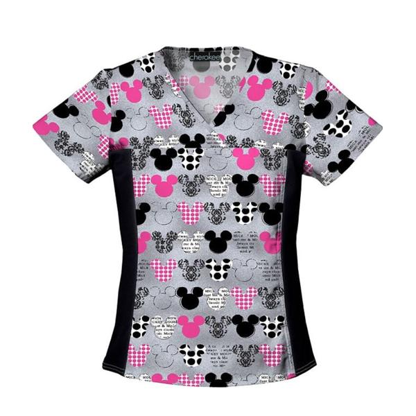 Cherokee Workwear Shirt Scrub 100% Cotton Womens Mickey Large 2 Pockets Each - 6875C-MKMK-L