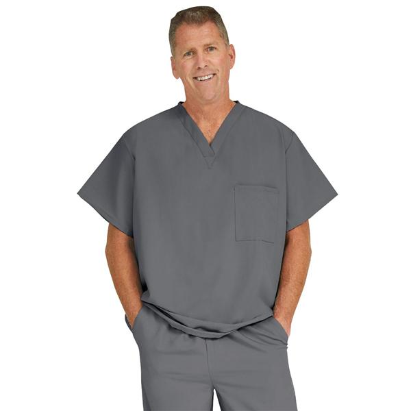 Shirt Scrub Fifth Ave 100% Polyester Adult Unisex Charcoal Pull Over 1 Pocket Short Sleeves Medium Each| Age | Adult |