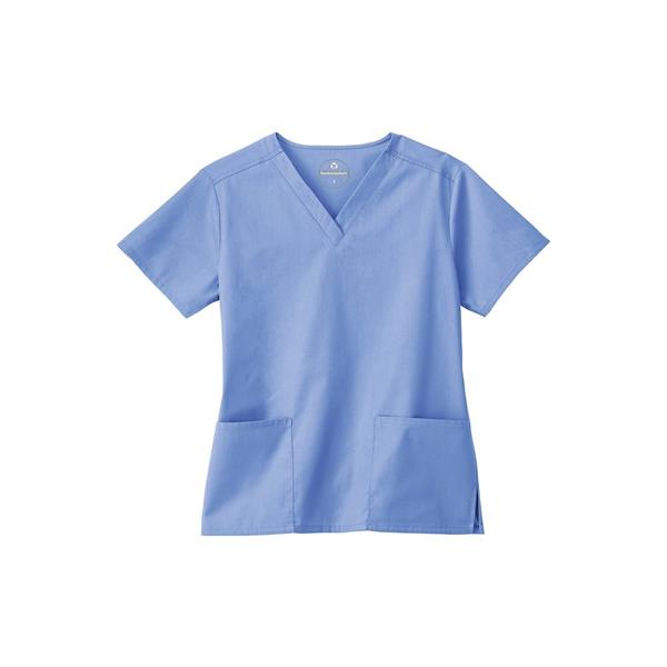 Shirt Scrub Fundamentals 65% Polyester / 35% Cotton With Soil Release Adult Womens Steel Blue V-Neck Pull Over 2 Pockets Set-In Sleeves 28 in Small Each| Age | Adult |