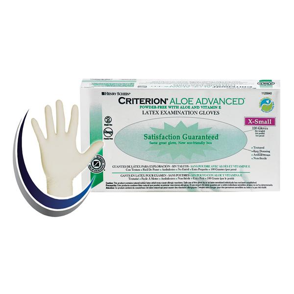 Henry Schein Inc. Gloves Exam Criterion Aloe Advanced Powder-Free Latex XS Natural White 100/Bx, 10 BX/CA - 1125840