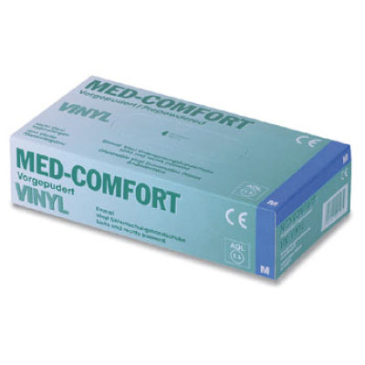 Powdered disposable vinyl gloves - great skin protection and good tolerance. Contents: 100 pieces in a practical dispenser carton