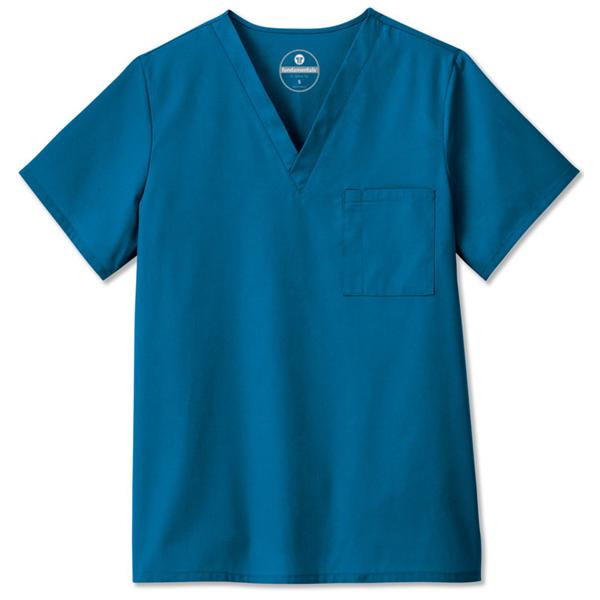 Shirt Scrub 65% Polyester / 35% Cotton With Soil Release Adult Unisex Caribbean Blue V-Neck Pull Over 1 Pocket Set-In Sleeves 29 in Medium Each| Age | Adult |