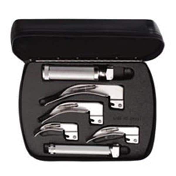 Laryngoscope Set Standard Miller Sizes #0, #1, #2, #3, #4 Lamp At Distal Tip Medium C- Cell Power Handle/ Small AA-Cell Power Handle With 1 Year Warranty/ Hard Storage 1/st| Blade Type | Miller |
