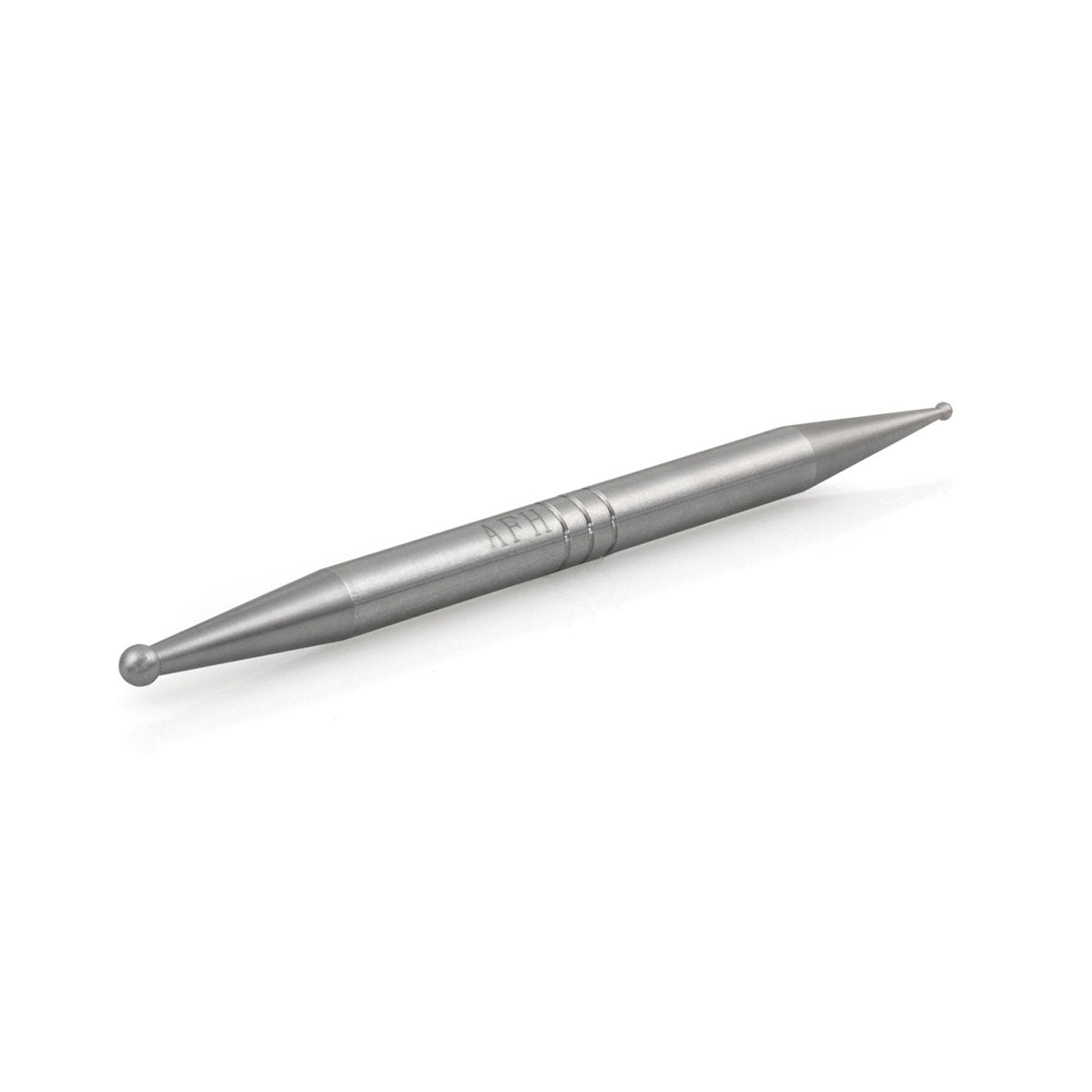 The AFH massage stick is used for breaking apart scar tissue and releasing trigger points. It features a silver plating and medium tip for a more dispersed pressure. Includes a protective box for proper storage.
