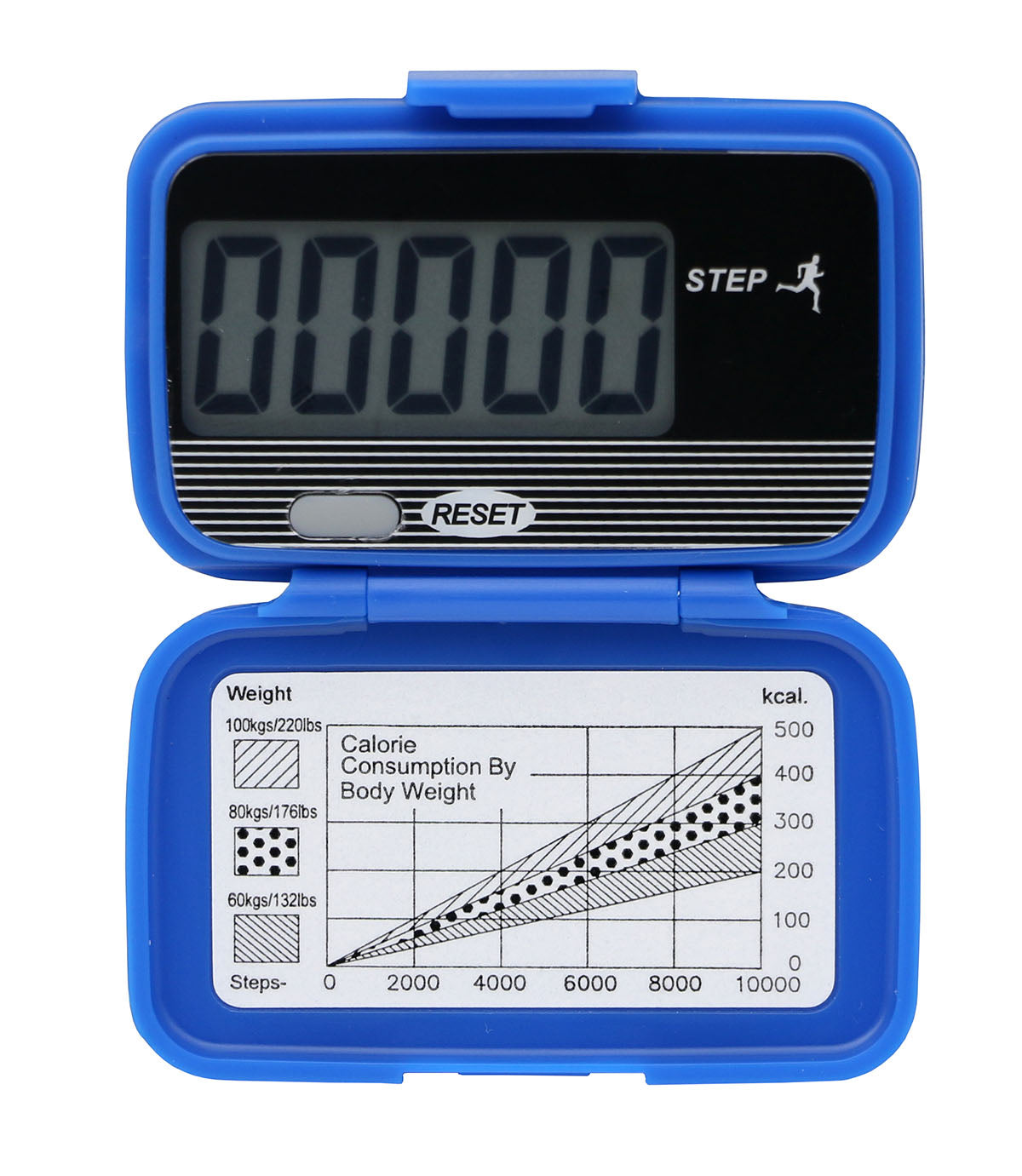 The Baseline Lite Pedometer measures every step the user takes for a healthier lifestyle. It features a large digital display that is easy to read. A chart is found below the screen to tell the user how many calories were burned per step. The hinged protective case has a strap attached to it to prevent the pedometer from being lost or broken.