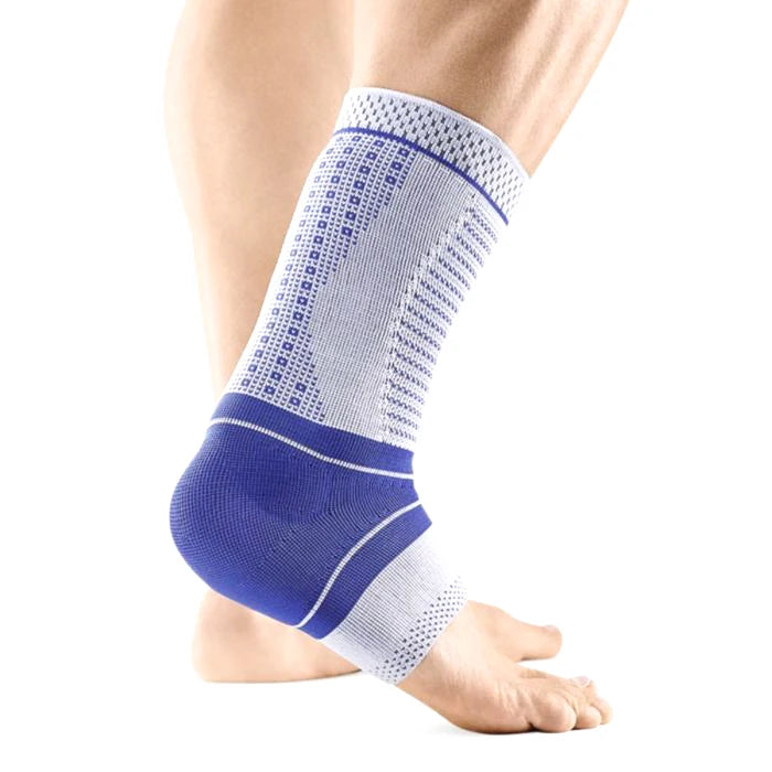 The Bauerfeind AchilloTrain Pro features and anatomically contoured viscoelastic insert with soft proprioceptive stimulating nodules runs alongside the Achilles tendon to provide pressure relief and reduce pain and swelling. With movement the nodules provide a massage that accelerates healing. Stimulation of the nerve endings in the muscle transitions heightens proprioception and improves muscle control. An integrated stretch zone knitted in the front makes it easy to don and doff.Â