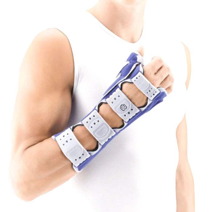 The immobilization of the wrist and thumb relieves pain immediately and prevents inappropriate mechanical stress. It can be adjusted in length for optimal fit or removed as the condition improves. All fingers are then released for controlled gripping while the wrist remains secured. Offers multi-stage therapies with secure immobilization: a hook and loop tab allows the gradual release of the thumb immobilization to allow a step by step mobilization of the metacarpophalangeal joint.