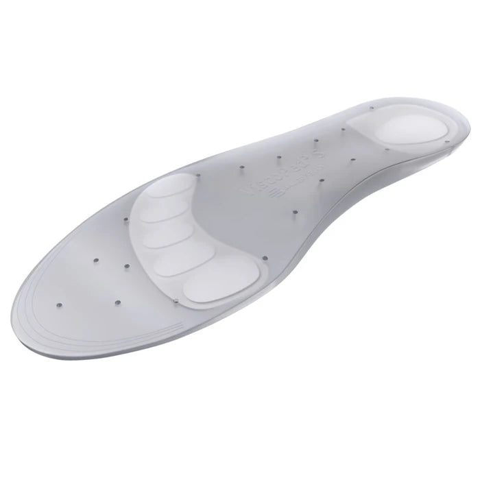 These full-length viscoelastic inserts should be used to reduce shock loads in the forefoot and heel areas. The unique soft padding reduces load peaks while eliminating painful irritation. This reduces the impact loads on the ankle, knee, hip, and spine. For use, simply slide into your casual, athletic, or work shoes. These insoles will help you to effectively distribute pressure peaks evenly across the entire surface of the foot.