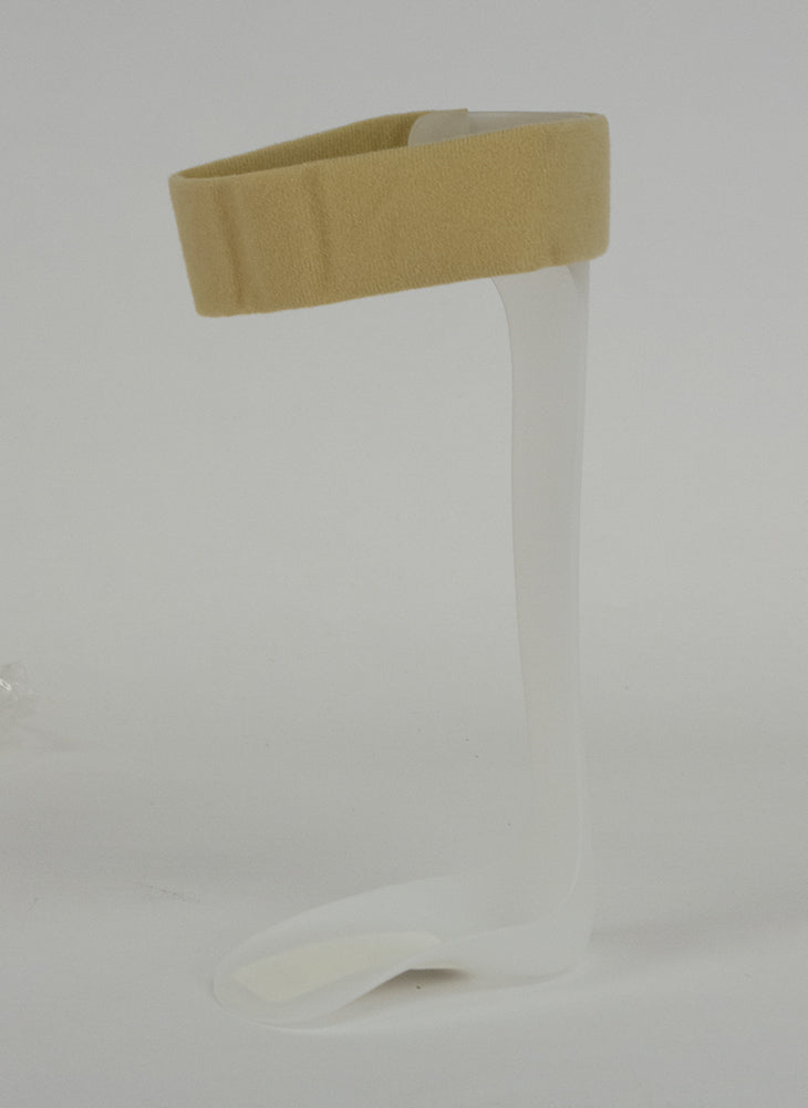 - Lightweight polyethylene brace designed to support drop foot