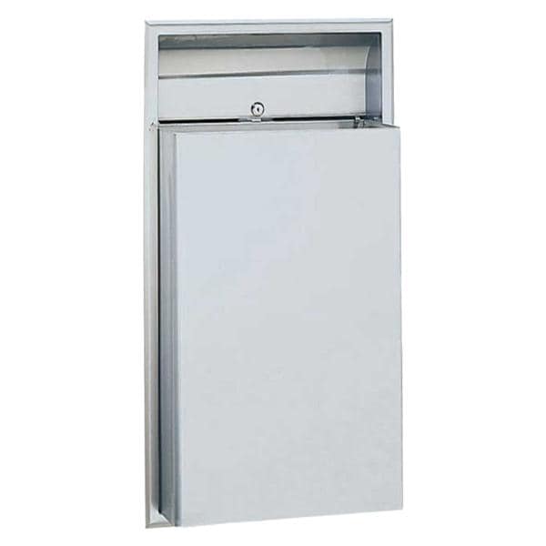 Bobrick Can Trash 1-Piece Tumbler Lock Hemmed Top Edges/Recessed w/ Key/Removable Waste Receptacle f/ 4" Wall Each - 3644