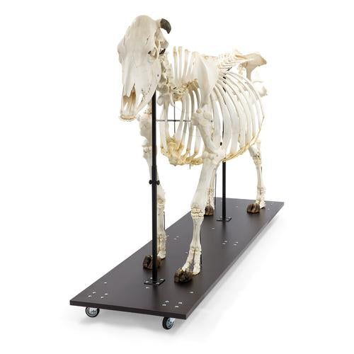 This impressive specimen of a genuine cow skeleton with horns comes mounted on a wooden base for easy display in the classroom. There is no better way to study the anatomy Bos taurus, the domestic cow, then with this cow skeleton. A detailed anatomical study is easy with this complete skeleton. This cow skeleton is perfect for mammal and comparative anatomy studies.