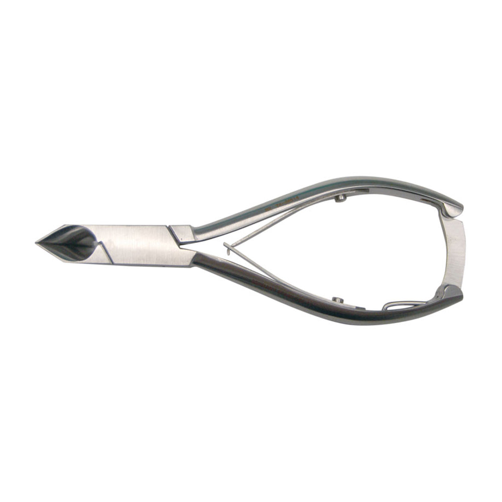 Nail Nipper, angled concave jaw with sharp end, double spring, with lock, 5½”