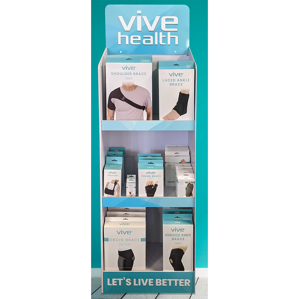 Easily upgrade your bracing & supports product offerings with Vive Health’s beautiful product packaging. The set also includes a floor display and 2 product holders.