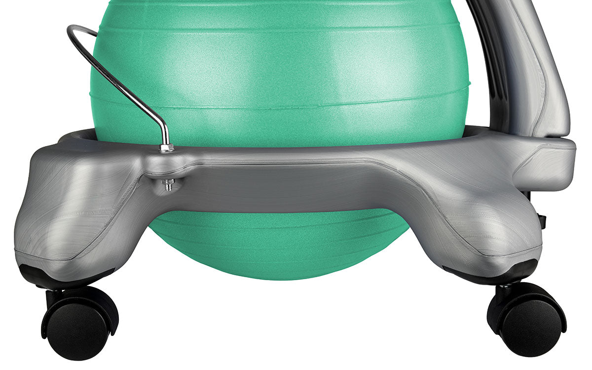 CanDo plastic ball chair includes a 15"(38 cm) green inflatable exercise ball and chair base. The mobile ergonomic seating systems combine the benefits of ball therapy with the convenience of a chair base. Ball held securely in place by the base. Casters glide on carpet or hard surfaces. Light assembly required. The plastic ball chair is available in child and adult size. Locking casters sold separately.