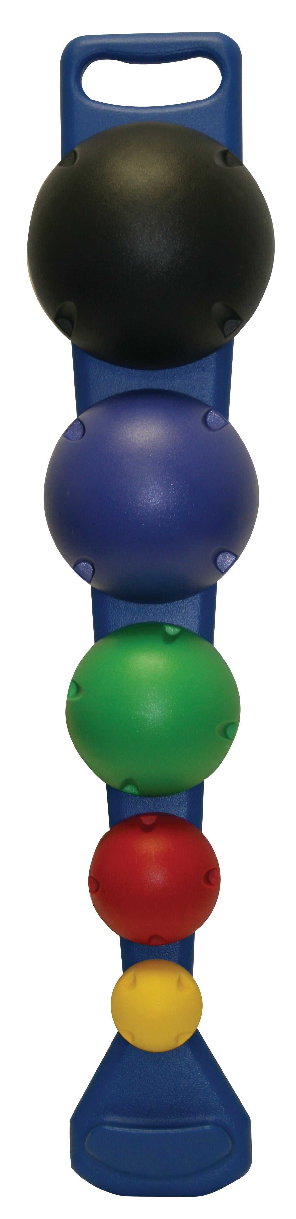 CanDo MVP Balance System - 5-Ball Set with Wall Rack (1 each: yellow, red, green, blue, black) - FE-10-1742