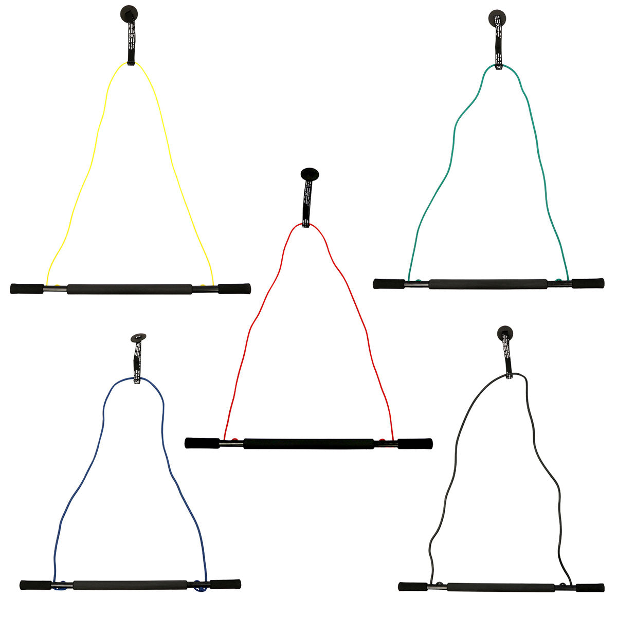 CanDo over door exercise bar and tubing, set of 5 (1 each: yellow, red, green, blue, black) - FE-10-5068