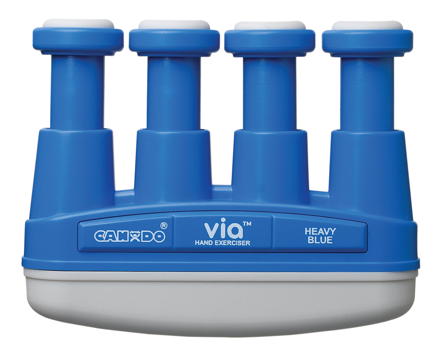 The CanDo Via hand exerciser develops isolated finger strength, flexibility and coordination as it builds hand and forearm strength. Soft finger pads and palm rest with an ergonomic design that's non-intimidating and appeals to children and seniors. Progressive color-coded resistance gives patient positive feedback. Also builds hand and forearm strength.