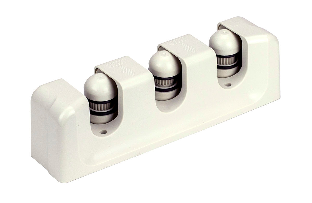 Designed as an accessory for the CanDo Slim and Mini WaTE Bars, this Wall Rack neatly and easily holds up to 3 WaTE Bars. Five slots running "north and south" are available to conveniently hold and store CanDo Slim and Mini WaTE Bars. Everyone knows WaTE Bars left on the floor are a tripping and safety hazard. This rack offers enough space to get the bars off the floor and organized. Sleek and modern looking, the rack will be a handy and good-looking addition to any home gym or professional facility. Minor installation is required to hang the rack on the wall but mounting hardware is included. Please note, this is the 3 Bar Vertical Wall Rack only. Weight bars are not included. Conveniently sized at 12.6" long x 3" wide, the Wall Rack can be hung nearly anywhere. To use, simply insert the weight bar into the slot. The rolling ball spring mechanism holds onto the bars securely without scratching them. The open design means the bars hanging from the rack are fully displayed, allowing users to find the WaTE Bar they need quickly and easily. While designed for CanDo WaTE Bars, the storage rack is suitable to hold other weight bars or exercise accessories. The off-white surface is easy to clean, needing just a warm damp cloth and some mild soap.