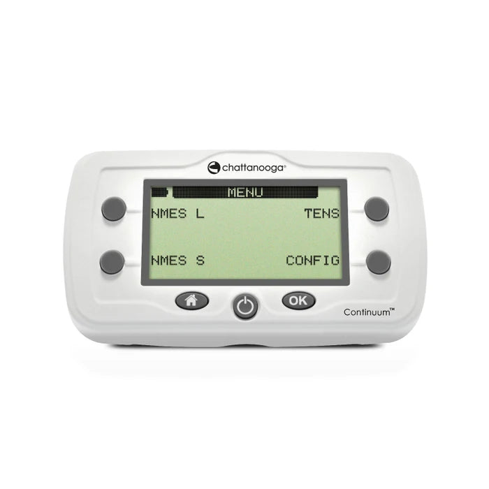 The Chattanooga Continuum is an improvement on NMES devices of the past. This system has 13 pre-programmed therapy options included & modifiable programs for NMES & TENS. The custom options include treatment time, waveform type (Symmetrical or Asymmetrical), pulse rates & durations (widths), cycling type, off times, channel ramp times, & on time.