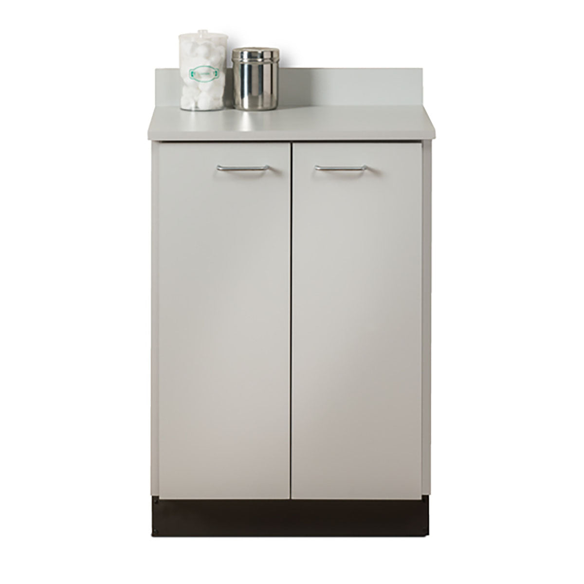 Versatility and functionality are the key words when it comes to these Clinton Base Cabinets. Suitable for exam rooms, treatment rooms, labs, offices, supply rooms and nearly every other location in a medical facility where items need to be stored. This is one of the most affordable cabinets on the market today and it is specifically designed to meet the storage and work surface needs of private practice offices, clinics and hospital areas. Offering great storage capability, exceptional durability and a variety of customizable options, it is designed to help optimize the work environment as well as meet individual requirements. Sized at 24" x 18" x 35", this cabinet has the space to hold what you need. Up front are two doors with fully adjustable, soft-close hinges that swing 110? and prevent slamming. Behind the doors are two adjustable shelves whose position can be customized. The all laminate surfaces are easy-clean and feature tough, chip resistant edges, ensuring the durability of this unit. A 3.25" backsplash extends from the top to not only look good but protect the wall behind from incidental splashes. The unit arrives pre-assembled and it's easy to install. Just place it, stock it and it's ready to go. The little touches like satin chrome pulls and a recessed toe kick elevate this cabinet from good to extraordinary. There are 4 standard colors available including maple, gray, dark cherry and slate gray. This cabinet is intended to be a fully customizable unit. Options that are available separately include sink options, countertop options, door and latch combos and a computer station option. There are 4 adjustable leveling feet on the units to ensure the cabinet is sturdy and steady. Clinton products are proudly made in the USA.