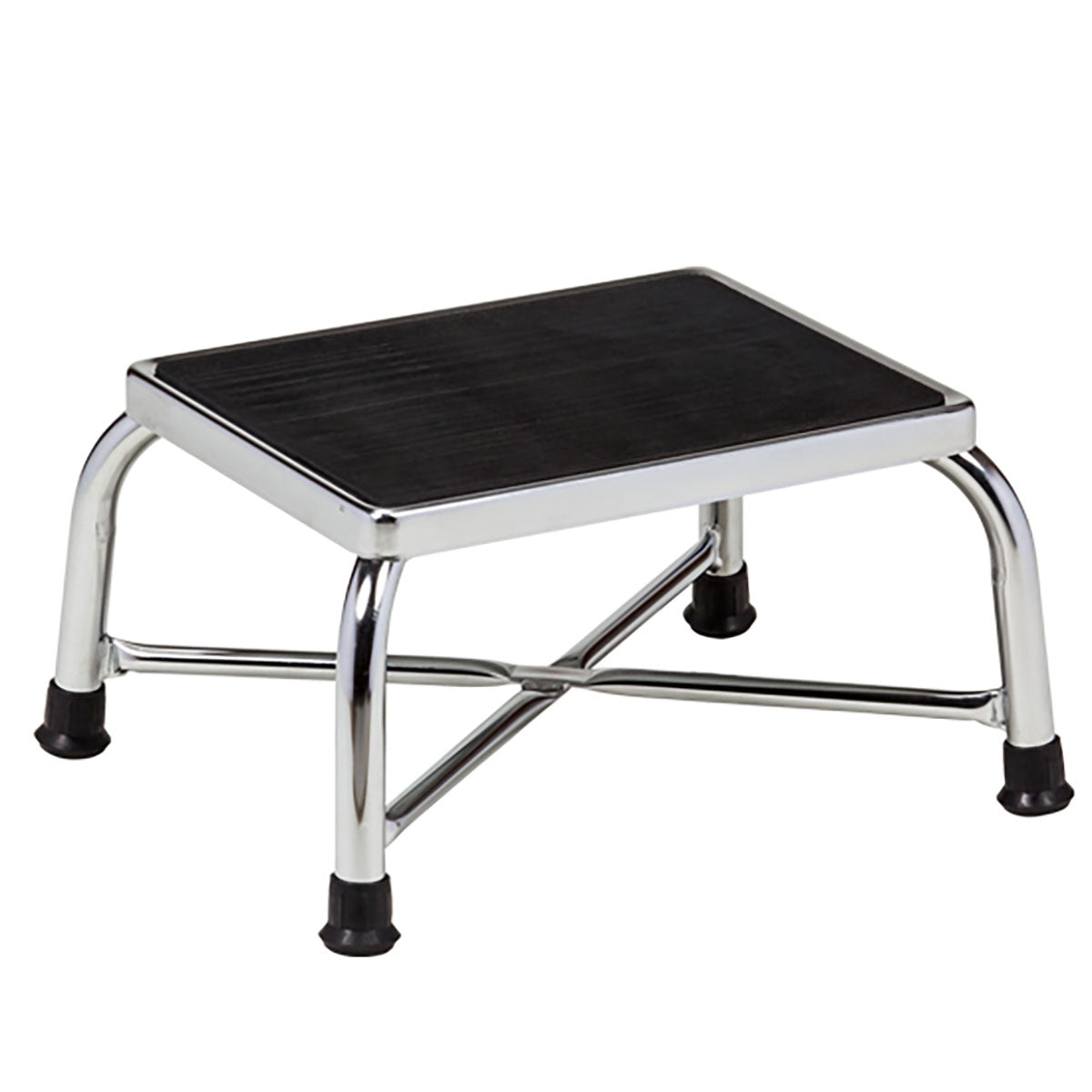Ready to step up your physical therapy and rehabilitation efforts? This Chrome Step Stool is an ideal device to aid larger patients who have difficulty with or are re-learning how to step. This stool is sturdy and stable with an all welded reinforced X brace and a top platform with grippy rubber tread on it. Generously sized at 14.25" x 11.25" x 9" tall, there's plenty of space to stand and maneuver as patients practice stepping up, stepping down and turning around. This stool has a weight capacity of 600 lbs. An all-welded base means no screws or rivets to come loose at inopportune moments. This stool is secure. Reinforced rubber feet at the end of each leg lets users know that once the stool is placed, it isn't going anywhere. At less than 11 lbs., moving this stool to where it's needed, or just out of the way, is an easy task. The durable chrome finish means this unit is easy to clean. A little dish soap and a little warm water will do the trick. Any of the commercial chrome cleaners will also work well. Clinton products are proudly made in the USA.