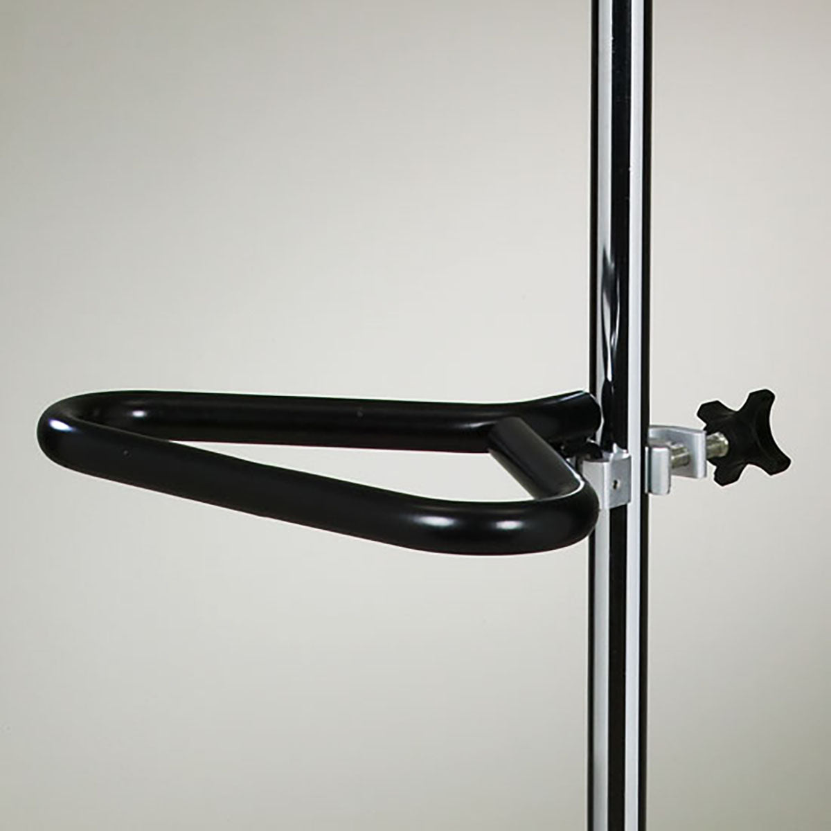 This Steering Handle from Clinton is an accessory for Clinton IV poles and pump infusion stands. Ideal for going across the room or from room-to-room. Please note, this is the Steering Handle only. Clamps, poles and stands are available separately. Aids in the movement and control of poles and stands. The Handle features an easy-grip, black vinyl coating. Sized at 11.5" x 12.5". the handle is relatively flat and easy to store when not in use. This handle requires the use of 1 Universal Clamp, which is available separately. Easy to clean needing just a soft cloth and mild soap.