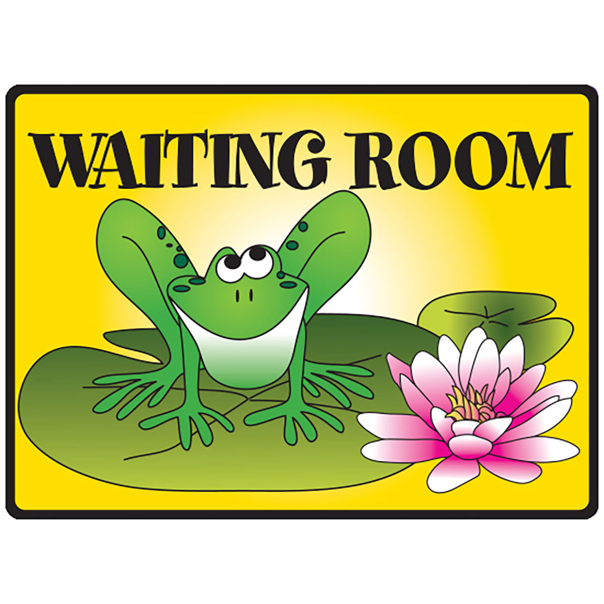 Clinics and medical centers just got a little less scary for the children. This Waiting Room Sign features a cheerful and smiling cartoon animal character. Now when a child is in the waiting room of a facility, the ambiance along with their first sights and memories won't be of a room full of "scary equipment," but rather of sunny and colorful faces making them feel at ease. This is an individual sign noting Waiting Room. All animal character Office Signs are available individually. Durable, each sign is pre-mounted on ridged black plastic. Signs hang easily to any smooth flat surface with the supplied hook and loop strips. Also available as stickers. PLEASE NOTE "STICKER ONLY" when ordering. At a size of 7.5" x 5.5", these signs are large, bright, eye-catching and sure to put children at ease.