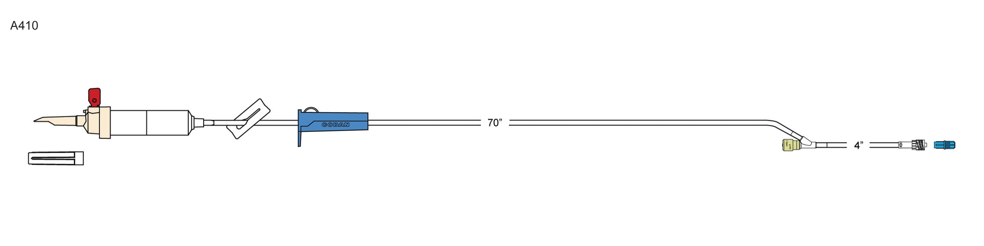 CODAN 20d vented chamber, 15 micron fluid filter, roller clamp, Y-injection site, spin-lock