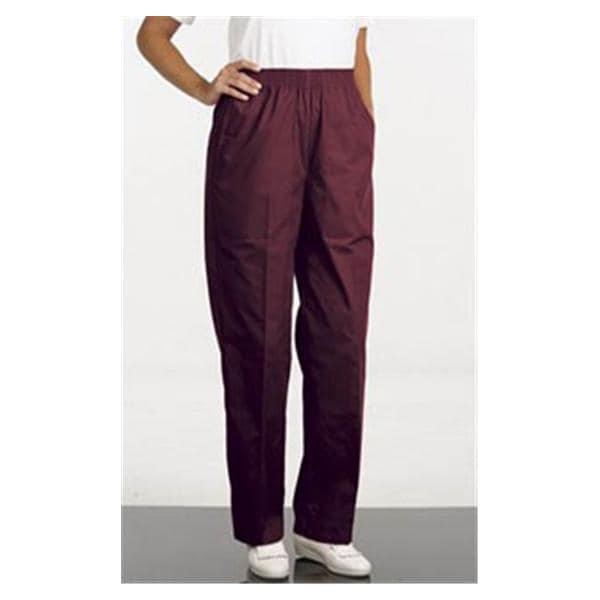 Pant Fashion Poplin 65% Polyester / 35% Cotton Adult Womens Burgundy 2 Pockets Elastic Waistband Medium Each| Age | Adult |