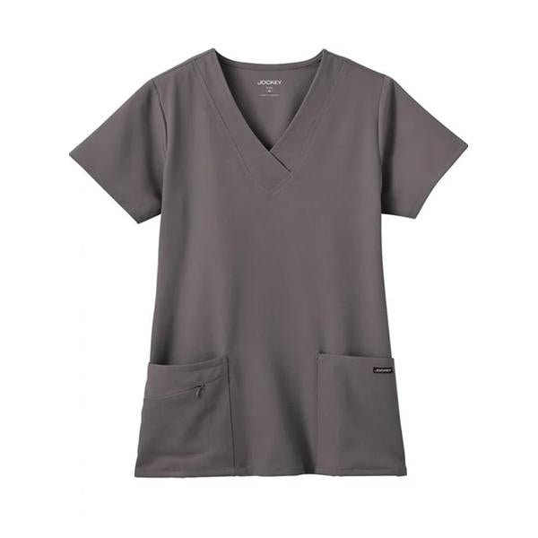 Scrub Top Jockey 72% Polyester / 21% Rayon / 7% Spandex Womens Charcoal Missy Fit V-Neck 2 Pockets Short Sleeves X-Small Each| Brand | Jockey |