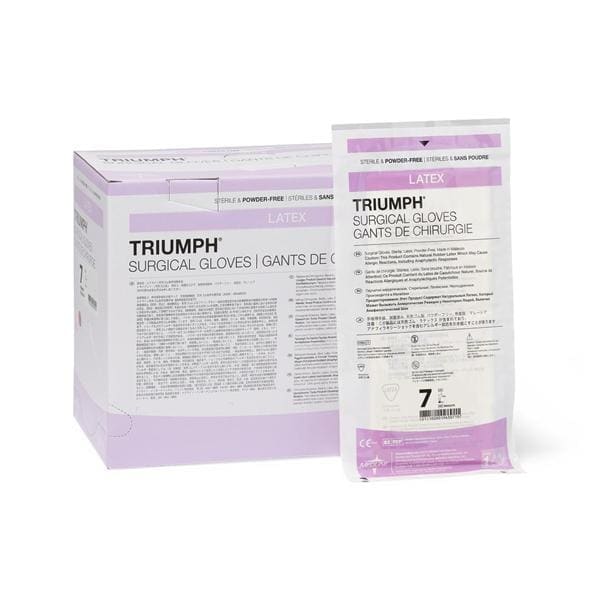 Triumph Surgical Gloves Latex Powder-Free Size 7 White Sterile Smooth 50/Box, 4 BX/CA