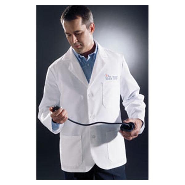 Lab Coat Consultation 80% Polyester / 20% Cotton Poplin MDT Mens White Size 34 30 in 3 Pockets Long Sleeves Latex Free Each| Age | Adult |