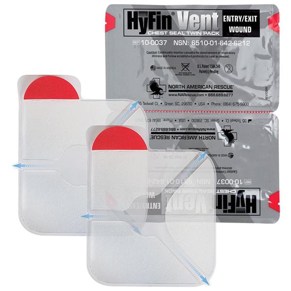 Vent Chest Seal Hyfin 6x6" Clear Disposable Not Made With Natural Rubber Latex Compact Adhesive With 3 Vented Channels/Gauze Wipe Pad/Red Pull Tab Twin Pack Each| Additional Attributes | Adhesive |