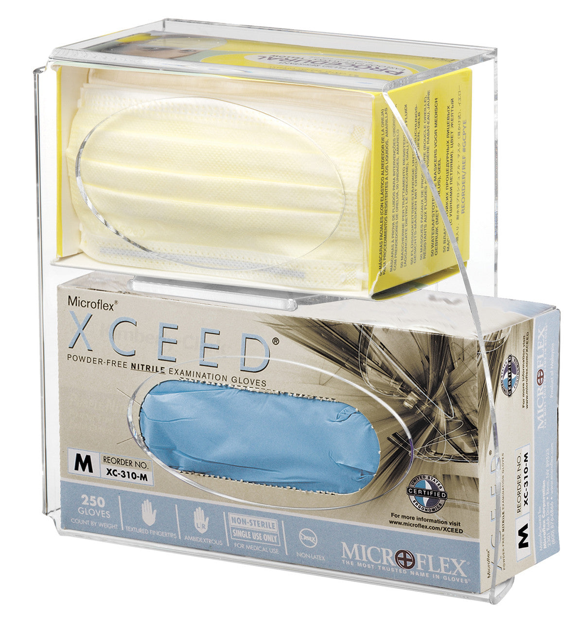 - Acrylic holder for masks, tissues and sanitizer holds 3 boxes (tissues/masks) and 18 oz. Hand sanitizer 5 year warranty