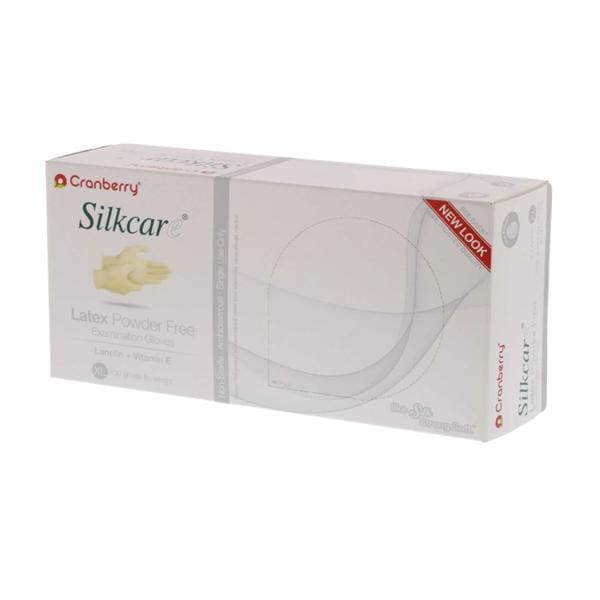 Silkcare Exam Gloves Latex 9.5 in Powder-Free X-Large Natural Non-Sterile Microtextured First Touch Enhancement 100/Box