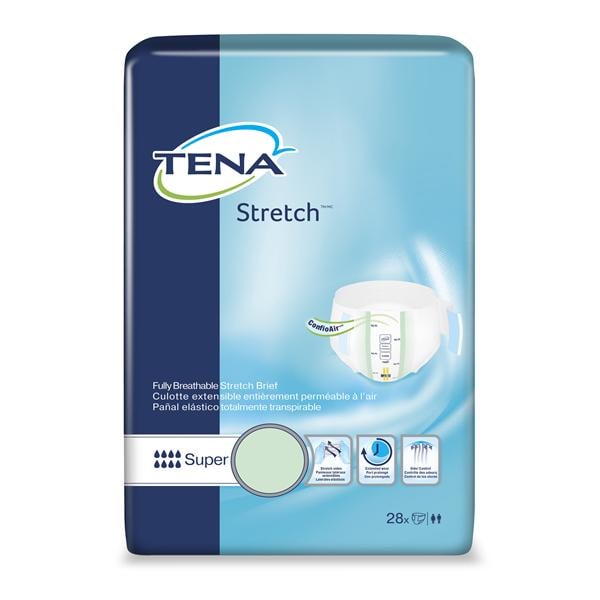 Brief Incontinence Tena Stretch Adult Unisex Medium/Regular Polymer/Soft Nonwoven Material 33-52" Super Odor Guard White Tab Closure With Blue Dryness Strip Disposable 56/Case| Absorbency | Super |