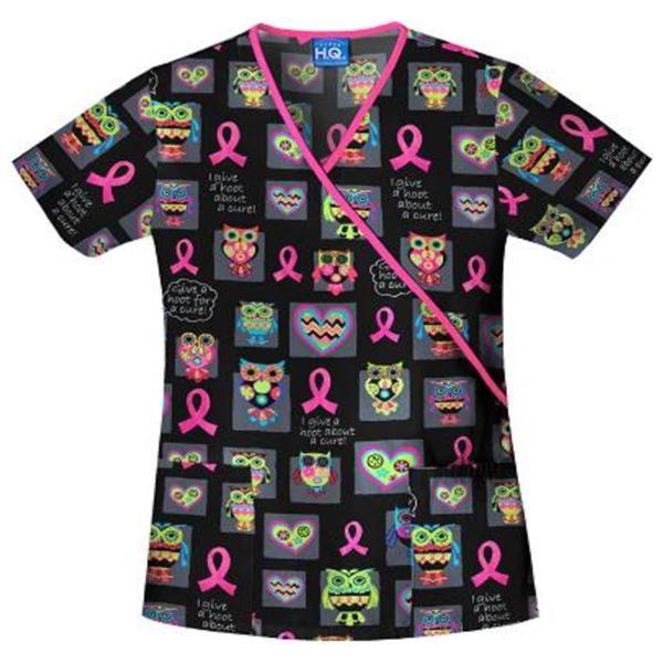 Shirt Scrub 100% Cotton 4826 Adult Womens I Give a Hoot Mock Wrap V-Neck Pull Over Non Reversible 2 Pockets Short Sleeves Non Sterile Reusable Medium Each| Age | Adult |