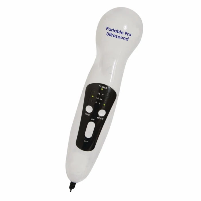 Strong and durable for professional grade clinic use in a portable package. Three intensity level settings: Low (30%), Medium (40%) and High (50%). Three time modes: 5, 10 and 15 minutes. Includes carrying case, gel and an AC adapter. 8”L x 2”W x 2-3/4”H.