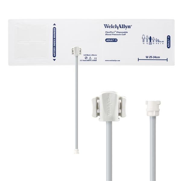 FlexiPort Soft Disposable Blood Pressure Cuffs, One-Tube Locking-Type Connector. FlexiPort® Soft Disposable One-Piece Blood Pressure Cuffs. FlexiPort disposable blood pressure cuffs are the top choice for hospitals and clinics around the world. They offer virtually every type of cuff a facility may need, along with the ability to simplify inventory like no other cuff provider with the patented FlexiPort connection. Features & Benefits: • Every cuff can be used as a one- or two-tube cuff thanks to patented FlexiPort technology • Cuff sizes range from small infant to thigh cuffs • Choose from either soft or vinyl fabric to fit anyone s preference • Color-coded for fast, accurate selection of the correct cuff size • Rotatable port reduces stress to cuff tubing and port, improving patient comfort and cuff durability • Meets all the latest clinical guidelines for proper fit from AAMI and AHA